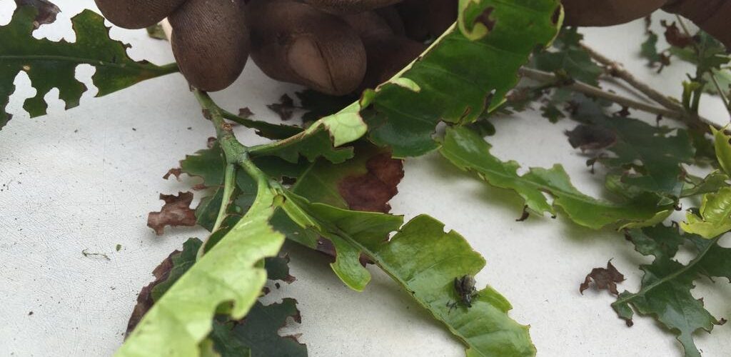 Danos causados pelo Carneirinho no café. (Foto: Dalyse Castanheira).