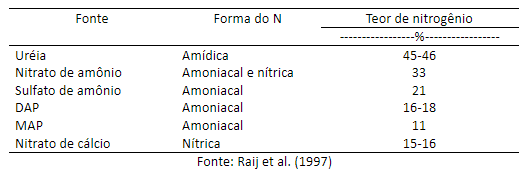 Tabela 1. Fontes de fertilizantes nitrogenados que podem ser utilizadas.