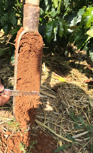 Figura 1. Trado holandês com amostra de solo em lavoura de café (Foto: Larissa Cocato)