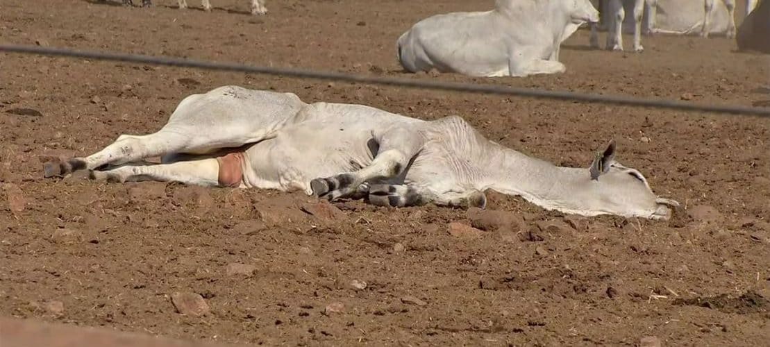 Bovino acometido pelo botulismo. Fonte: Fotos do material da disciplina de sanidade, Dr. José Zambrano, técnico em sanidade do Rehagro.