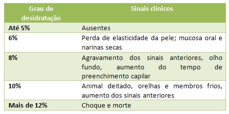 Sinais clínicos em função do grau de desidratação